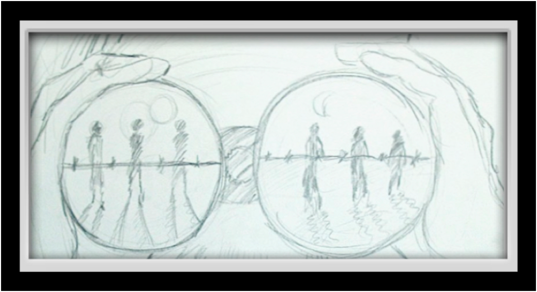 He drew this on my kitchen table in Austin, 2001. We were talking on how